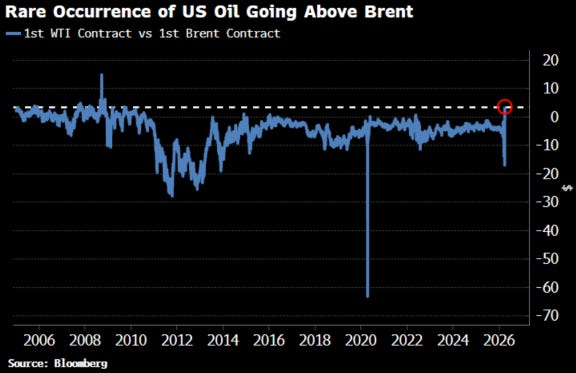 WTI just settled higher than Brent for the first time since 2022. That got everyone’s attention.