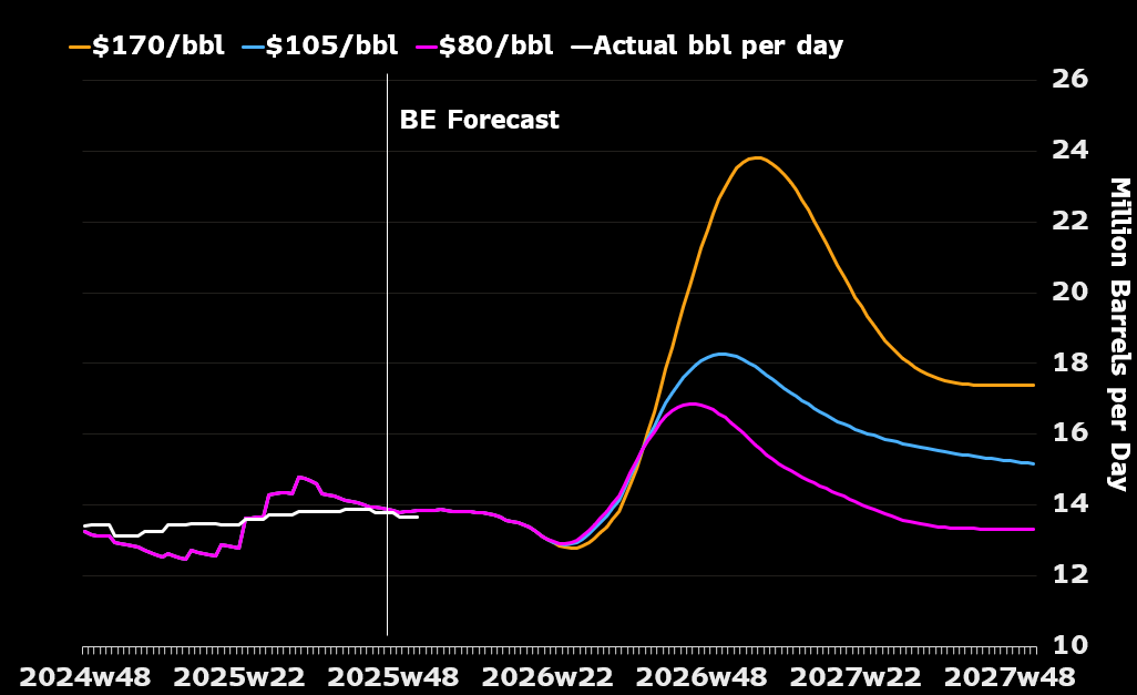 Brent at $110 with Hormuz shut is not the ceiling. It’s the starting point. Under our base case, $120–150 is where this settles for as long as the strait stays closed.