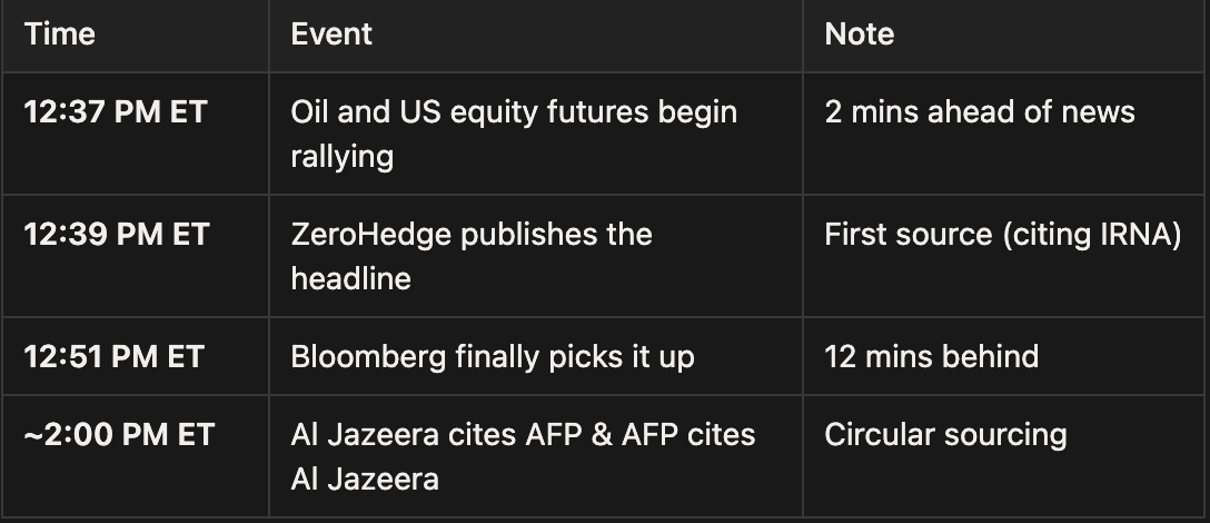 A well-timed rumor, a low-credibility first source, circular media amplification, and a market that desperately wants to believe the pain is over.